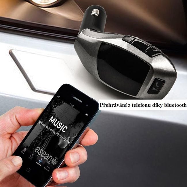 The Bluetooth transmitter features a luxurious design. It supports playback from a flash drive, memory card, or phone. It also allows you to charge your phone via USB. The transmitter is equipped with an automatic shutdown function and hands-free capability. How to connect it? Simply plug it into the car cigarette lighter, tune to an empty frequency on the radio, and you're good to go!