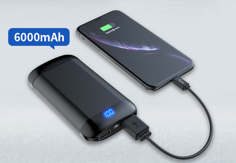 The capacity of the power bank is 6000mAh, allowing you to charge your phone and the headphones at the same time.
