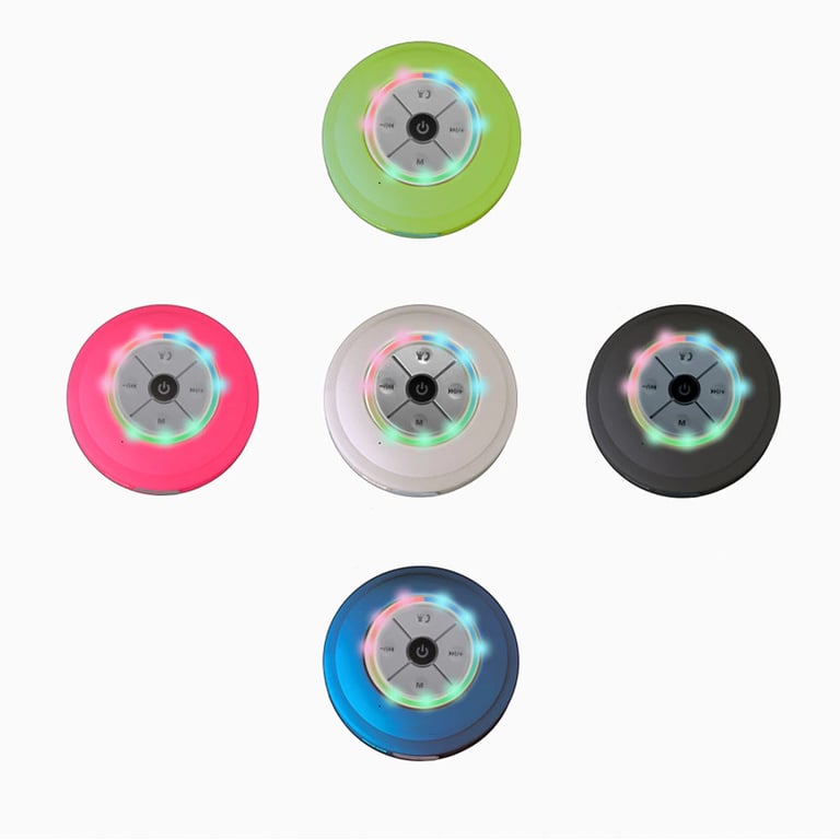 Modern speaker with a suction cup for attachment to all smooth surfaces. Control your music anywhere, wirelessly.