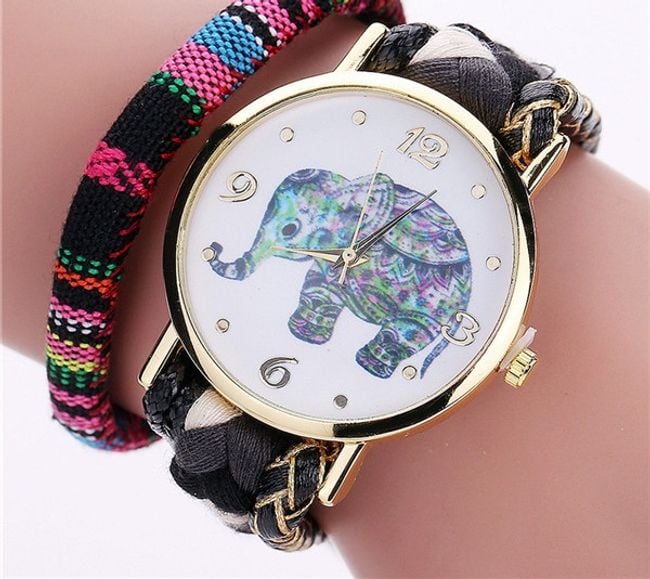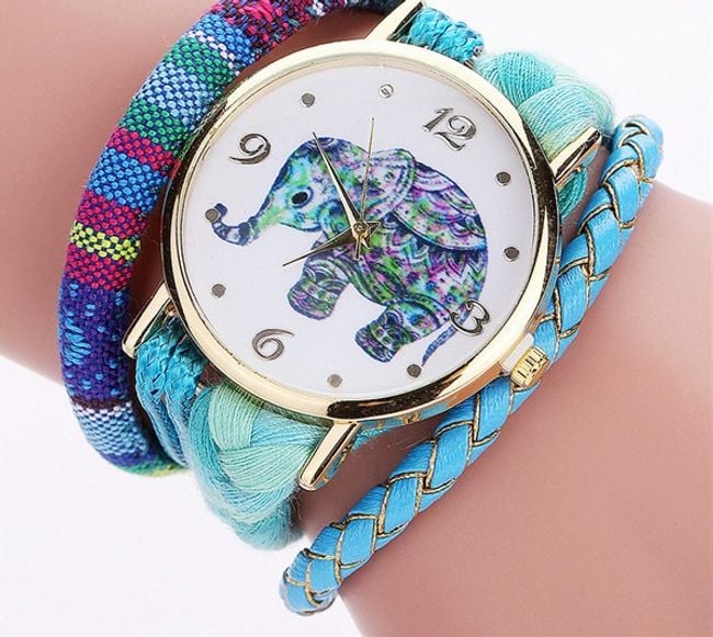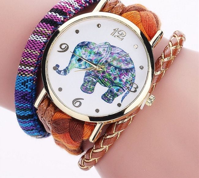 Beautiful bohemian watch with an elephant. The watch features a stylish triple strap that fastens with a magnet. It has a beautifully decorated dial with an elephant motif, and you can choose from several strap colours.