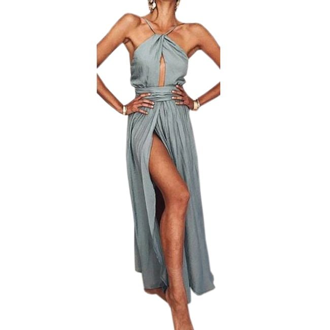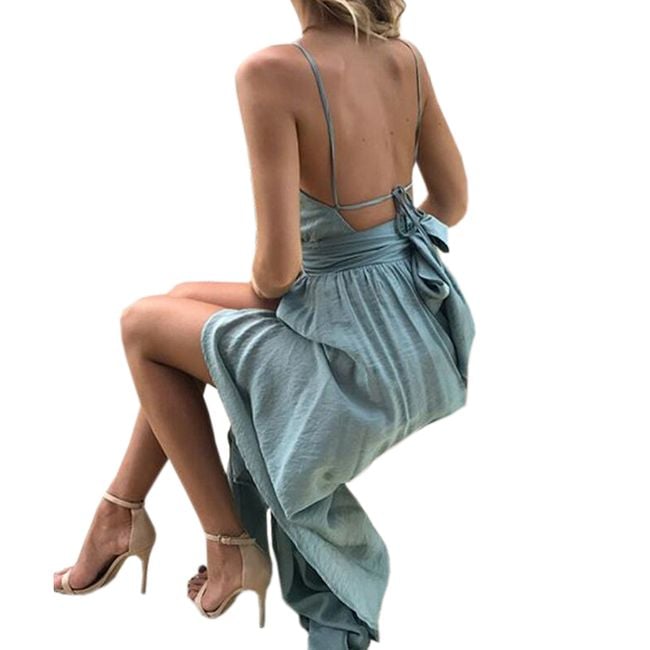 Long dress with an open back, a long slit, and a cut-out under the bust is truly daring and will make you a sexy cat.