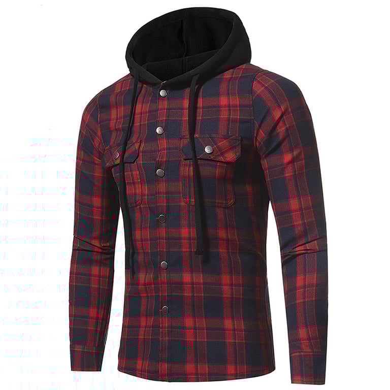 BoldGent™ Men's Flannel Hooded Shirt Peter – Red