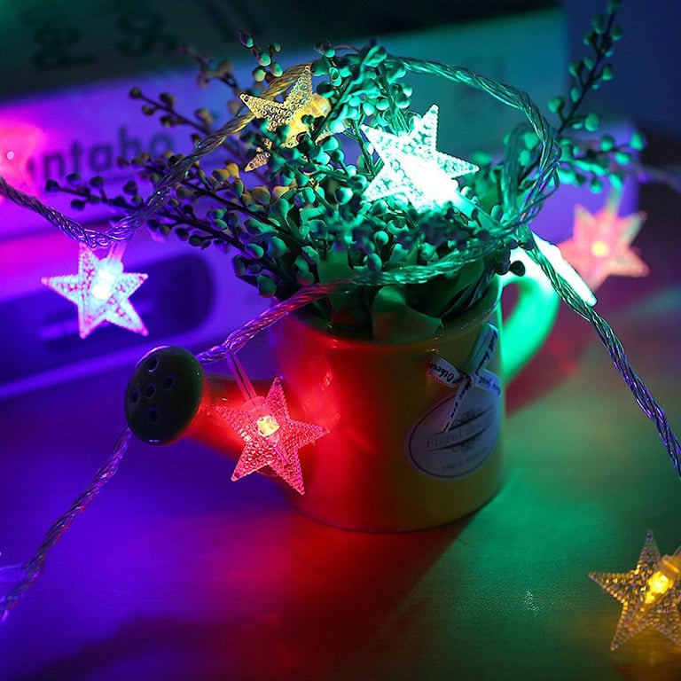 Decorative Christmas LED light chain with stars. Choose either coloured lights or white.