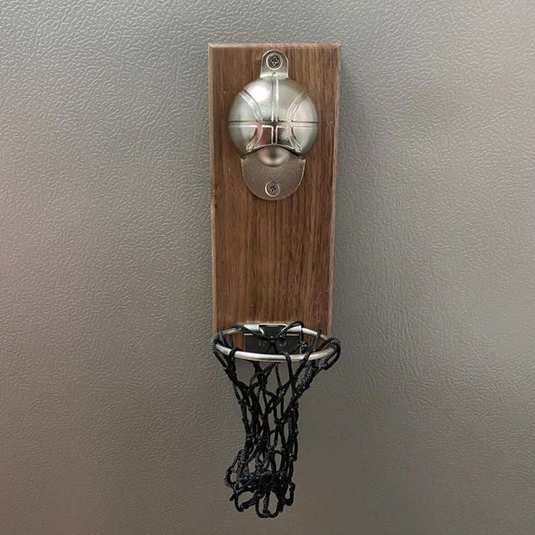 Bottle opener with a basketball motif