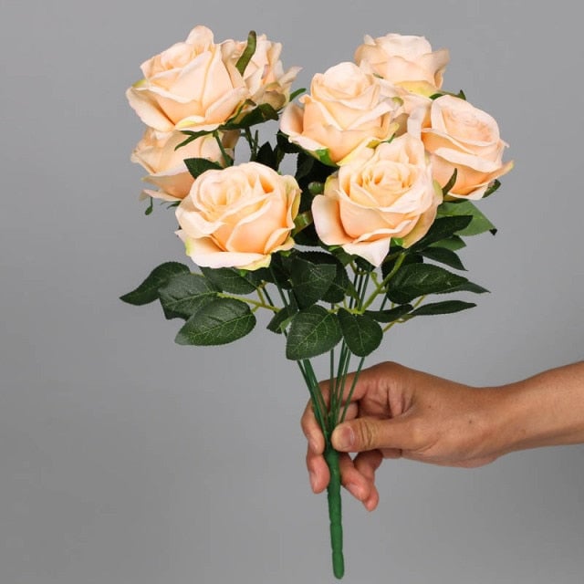 Bouquet of nine artificial roses.