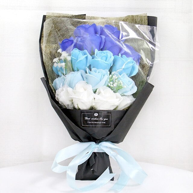 bouquet of soap roses with a gift bag.