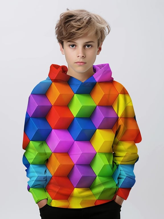 Boys' sweatshirt with a 3D print of a construction toy.