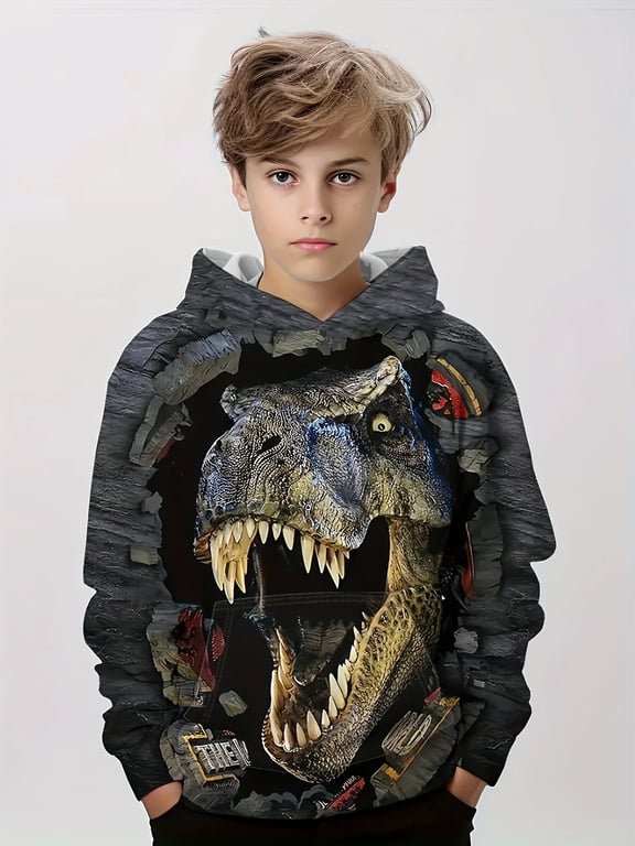 Boys' hoodie with a 3D T-Rex print - multiple variants