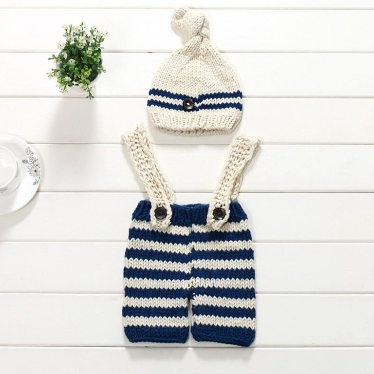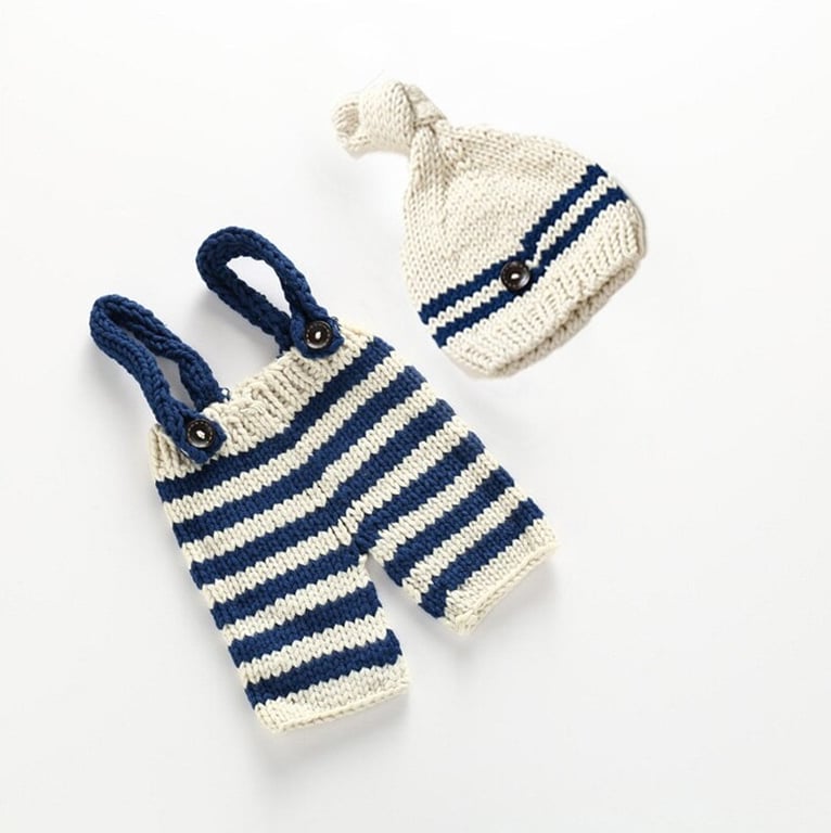 Beautiful two-piece set for newborn photography – hat and trousers with suspenders.