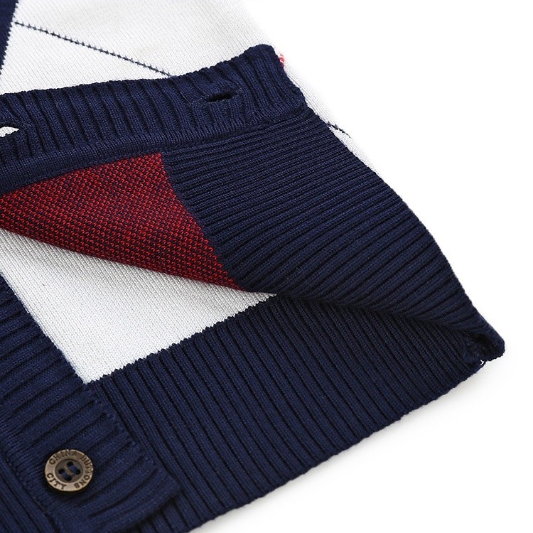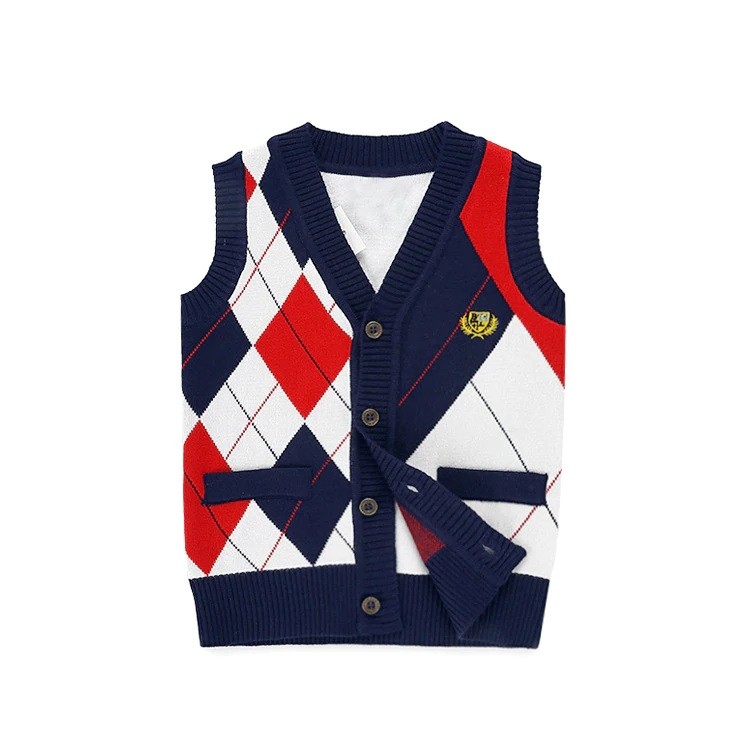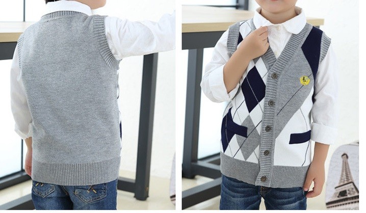 A knitted boys' vest with a checked pattern will look great on any young boy.