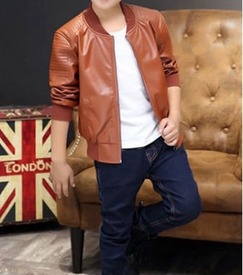 Your son's leather jacket with fur will definitely keep him warm.