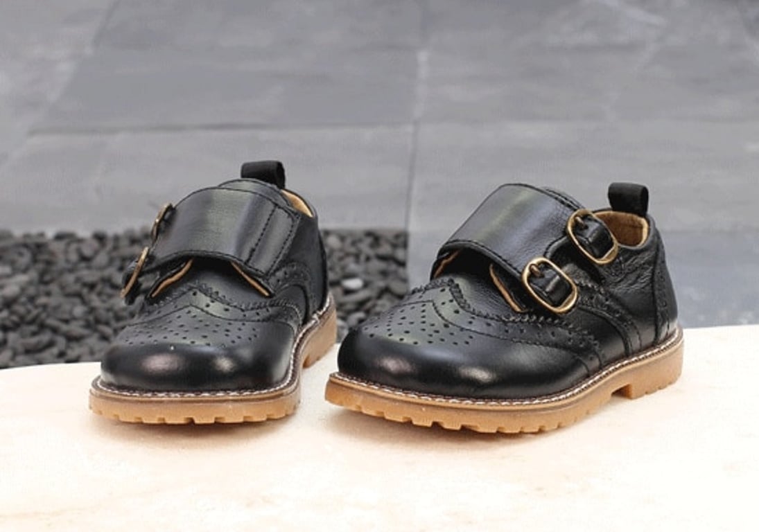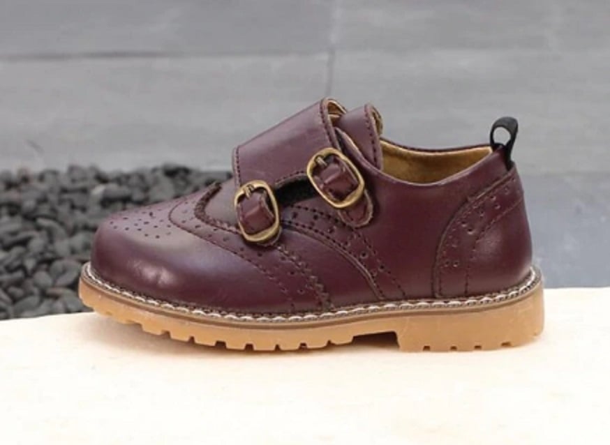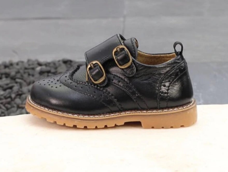 Leather shoes for boys with buckles.