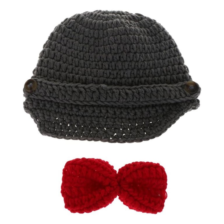 Cute children's knitted set - hat, shorts with suspenders and bow tie.