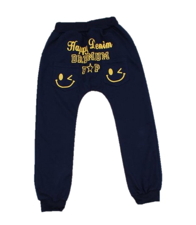 Beautiful boys' sweatpants with emoji print and the inscription HAPPY SMILE.