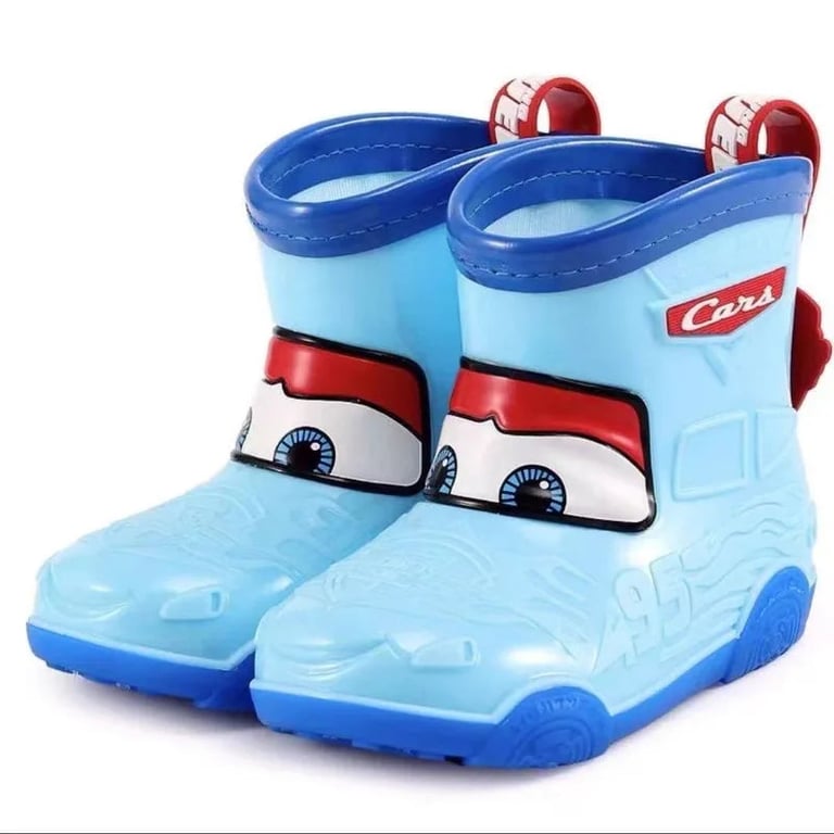 Kids' Wellington boots featuring the Lightning McQueen design from the Cars movie will delight every little fan of animated cars. The boots come in a striking blue or yellow colour, with a detailed design based on the original and a practical non-slip sole, making them safe for everyday wear in rain and mud. Available in sizes with an inner sole length of 15–19 cm, suitable for boys and girls.