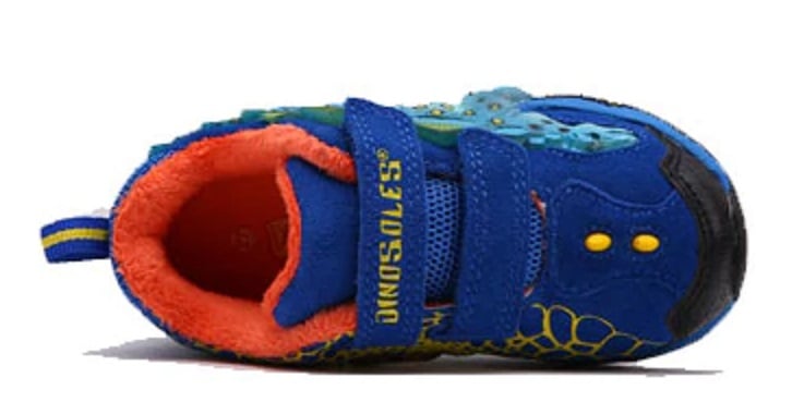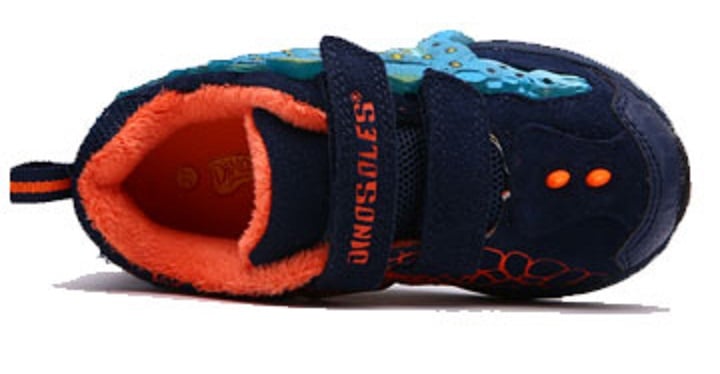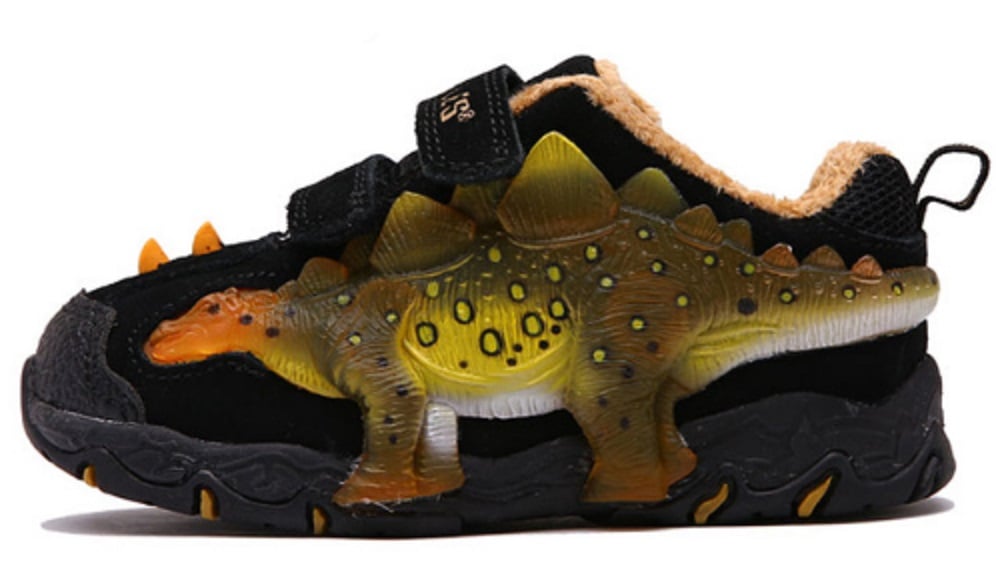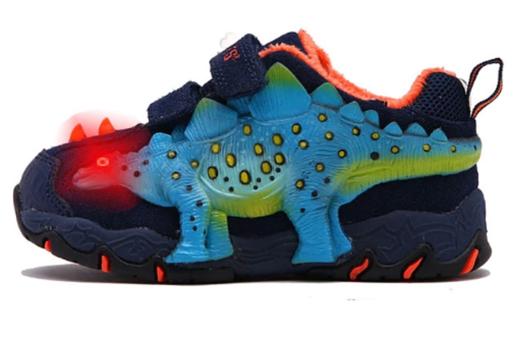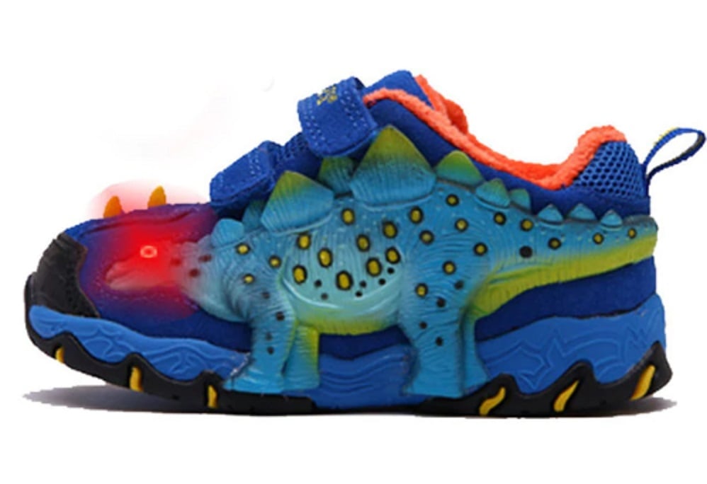 Inside the boots, there is an LED light that illuminates a 3D image of a dinosaur.