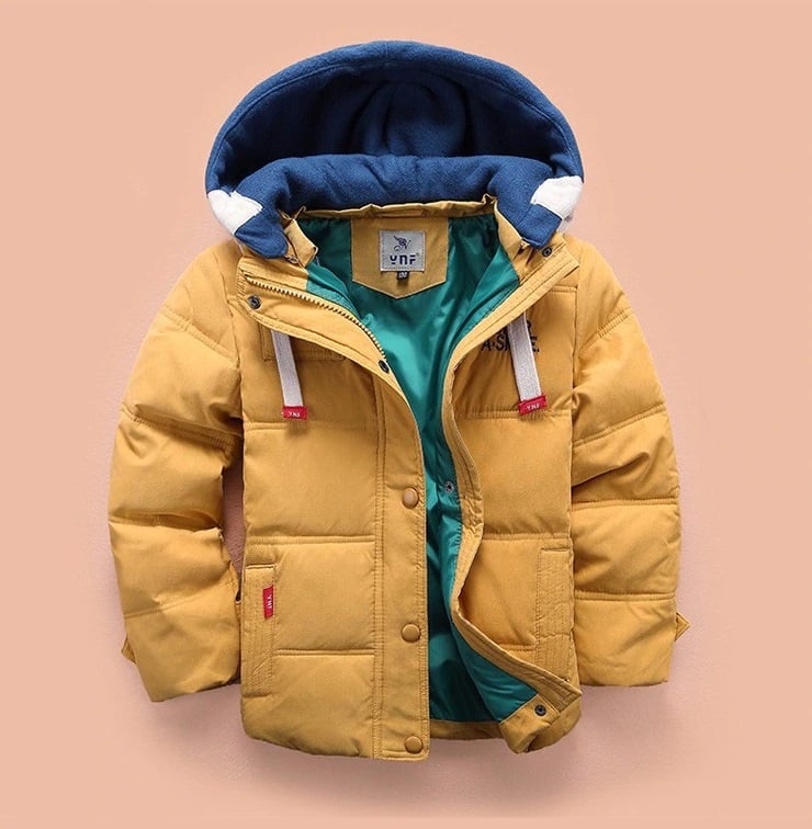The boys' winter padded jacket is the perfect choice for winter. This jacket filled with duck down will surely keep your little rascal warm.