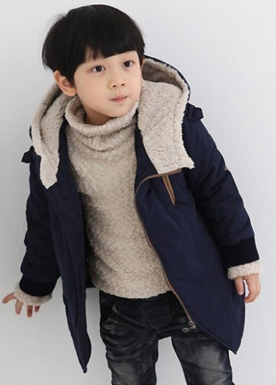 The boys' winter jacket will reliably protect your child from the cold and frost.