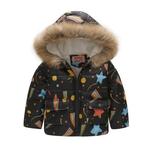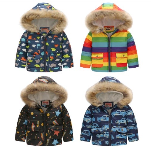 This beautiful modern jacket for boys will wonderfully protect against cold weather.