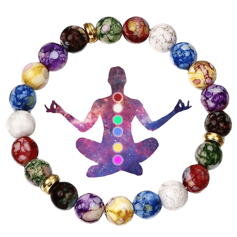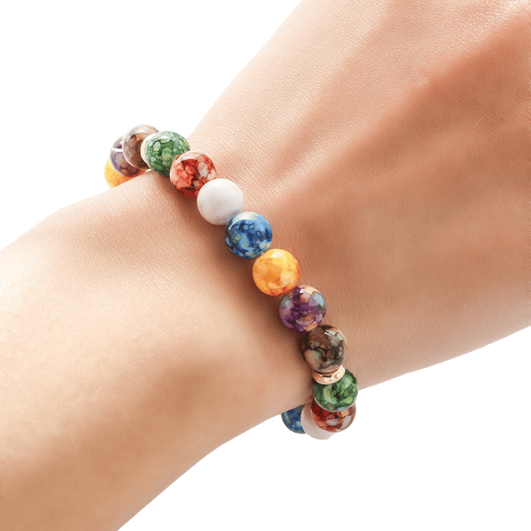 This elegant seven chakra bracelet 6 cm features 6 mm beads. It includes beads in seven colours, each representing one of the chakras. The bracelet has a calming and harmonising effect on both body and soul.