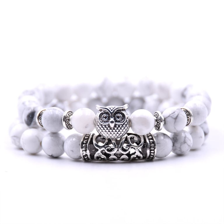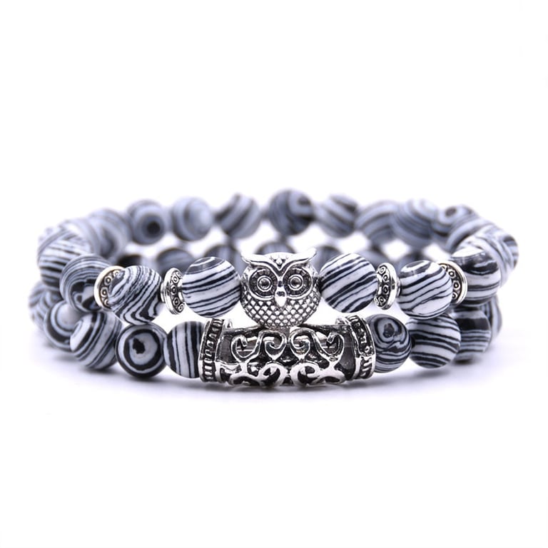 Bracelet with an owl made of lava stones