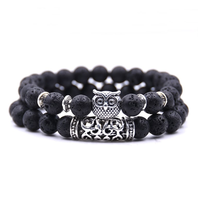 Bracelet with an owl made of lava stones.