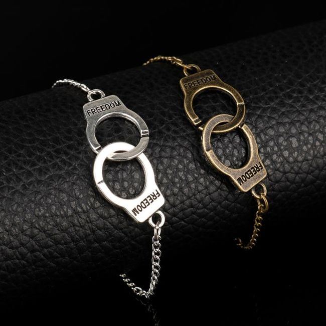 Original bracelet with cuffs features an extending chain.