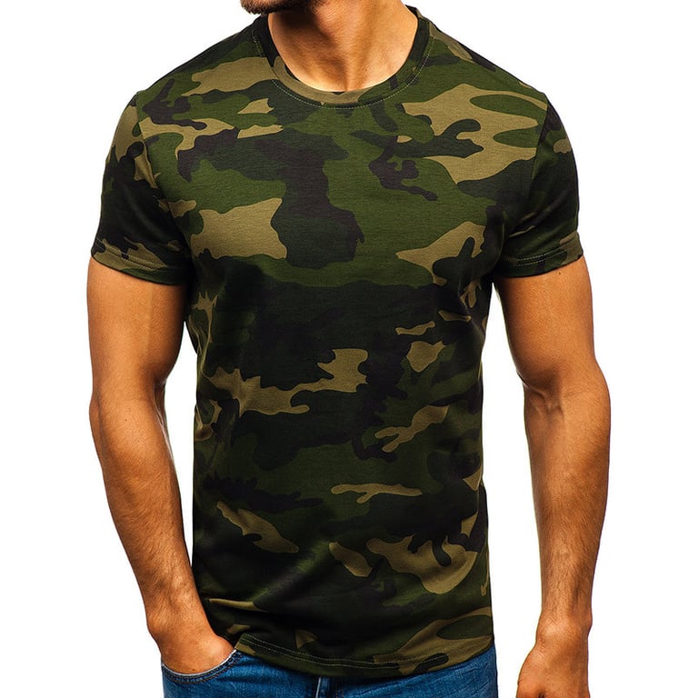 Men's short-sleeve t-shirt with a round neckline. Colourful print with an army pattern. Available in multiple variants. Loose straight fit.