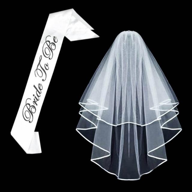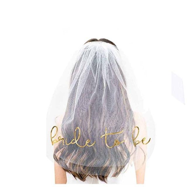 Short white wedding veil for the bride at the hen party. Wedding sashes are also available.