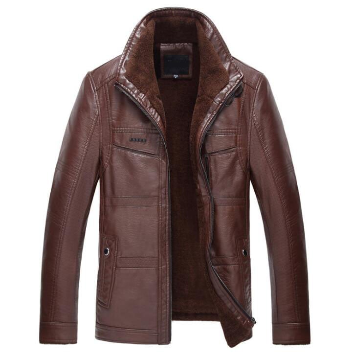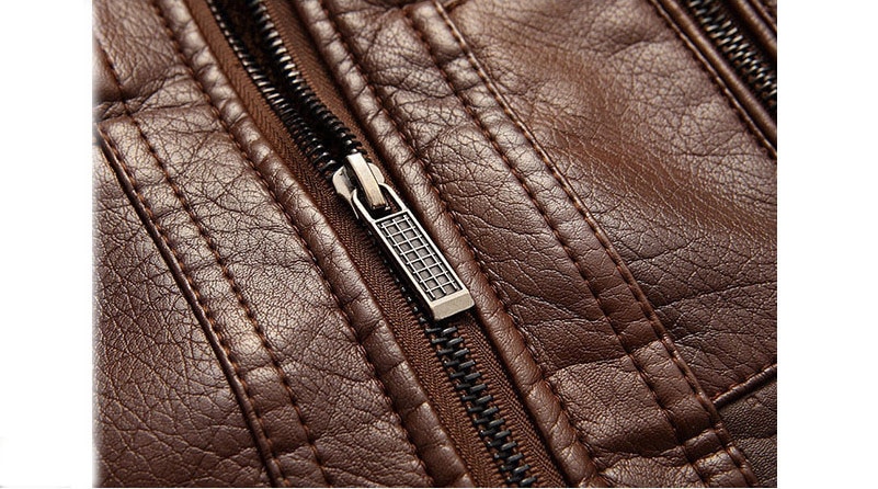 The insulated jacket made from eco-leather features a stand-up collar and zips up the entire length. Inside, the jacket has a very pleasant and warm lining.