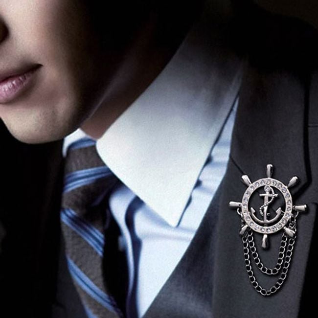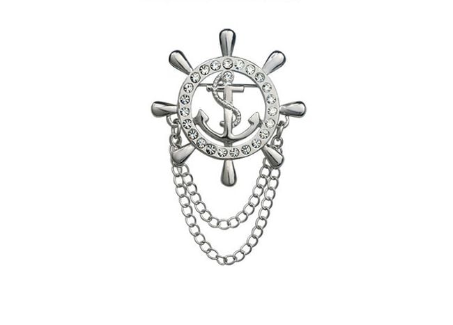 The brooch in the shape of a rudder serves as an interesting accessory. Choose from 2 colours.
