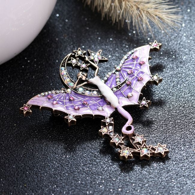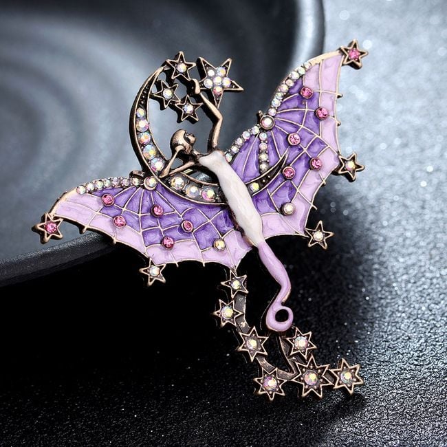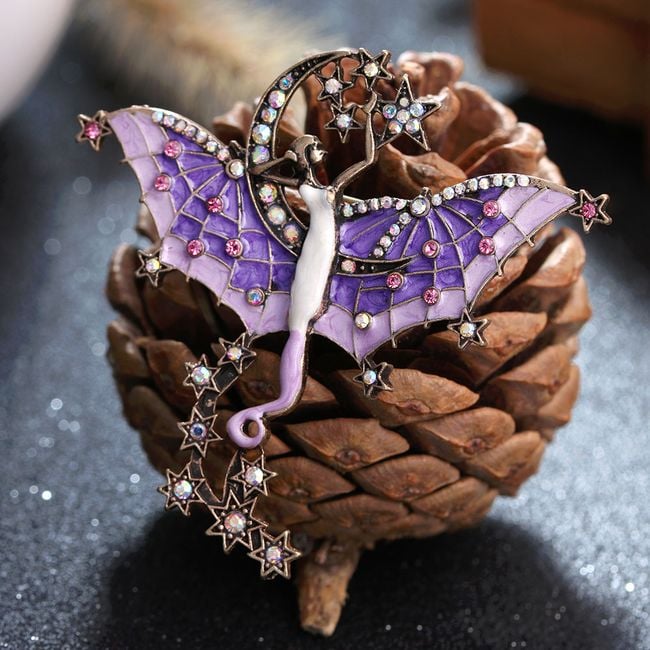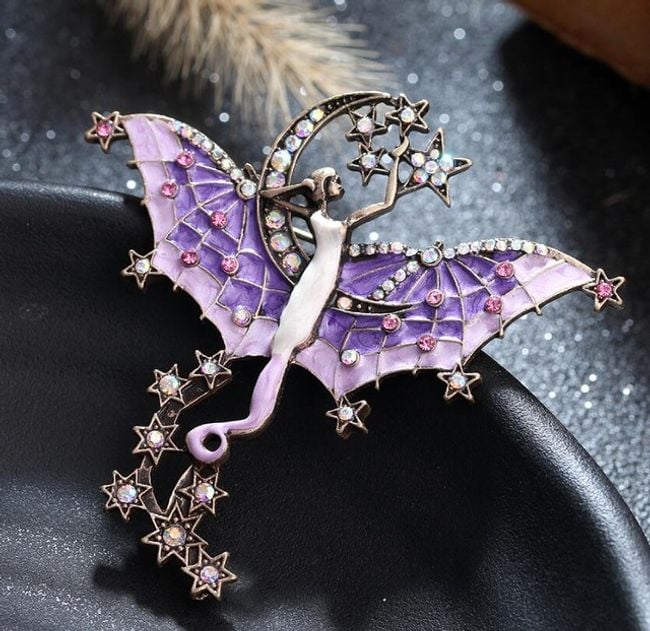 The winged brooch serves as a tasteful accessory. A suitable gift for women.