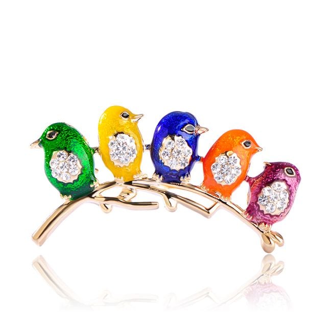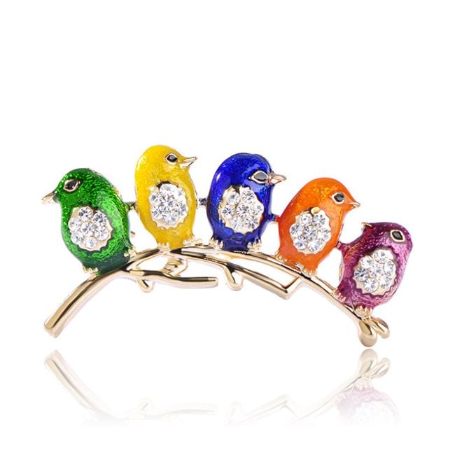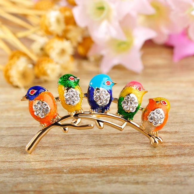 The brooch is adorned with beautiful stones and is suitable for a plain top.