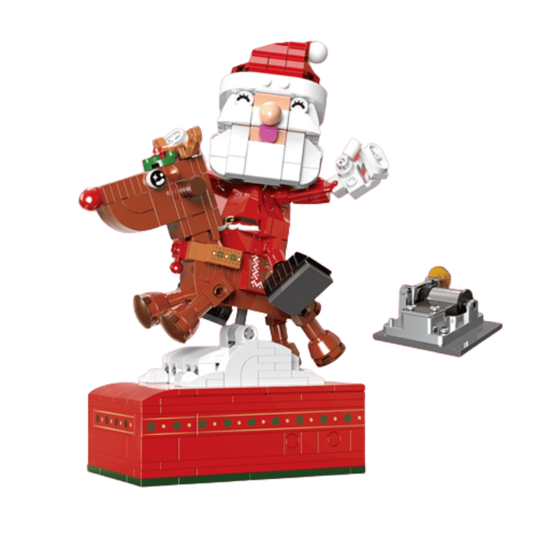 The Santa building set on a reindeer is compatible with Lego building sets.