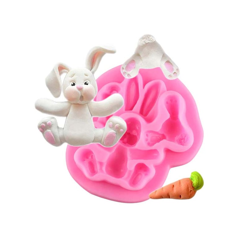 Silicone mould for fondant or marzipan, with which you can easily create decorations for cakes or pastries – a bunny and a carrot. Product features: