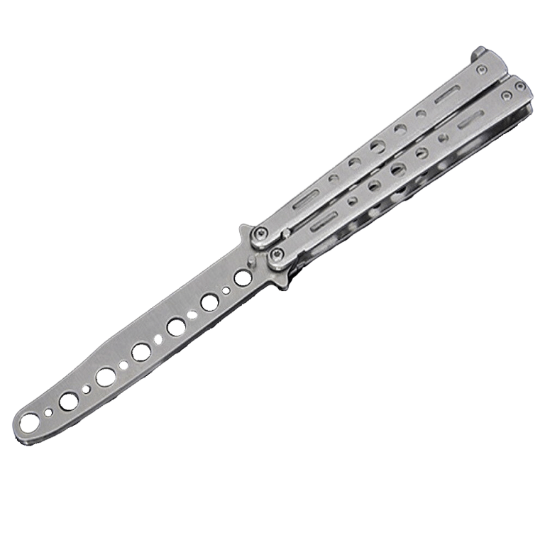 This butterfly knife can easily fit into your pocket, making it convenient to use at any time during the day. It is suitable for travel, fishing, and any outdoor activities. The butterfly knife has an overall length of approximately 22 cm.