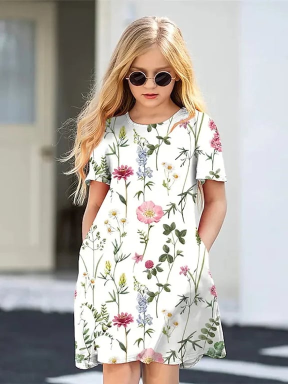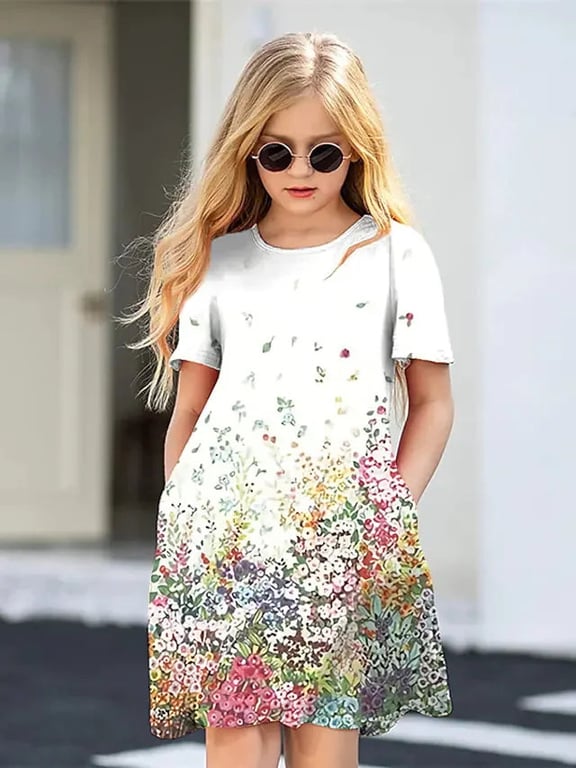 ButterflyBloom™ Girls' Summer Floral Dress.