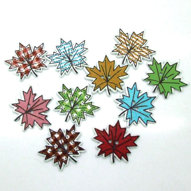 The autumn leaf-shaped button serves as a decoration. The package contains 50 pieces.