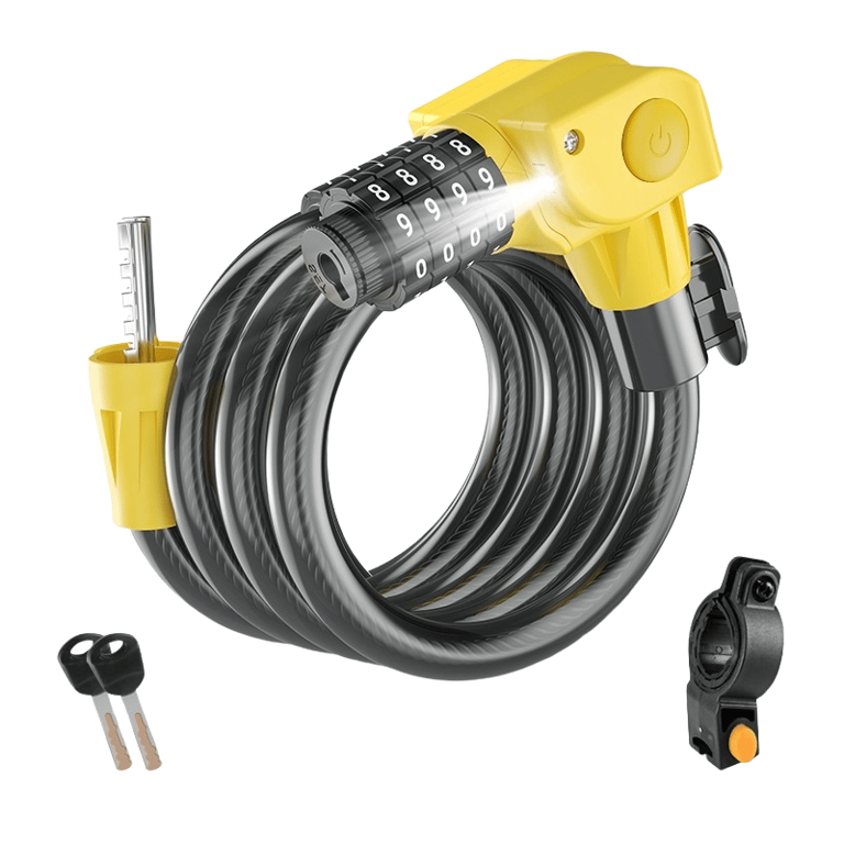 Get this cable lock for your bicycle with a light and you will be able to leave your bike parked unattended. The lock is 90 cm long. The package includes a frame holder.