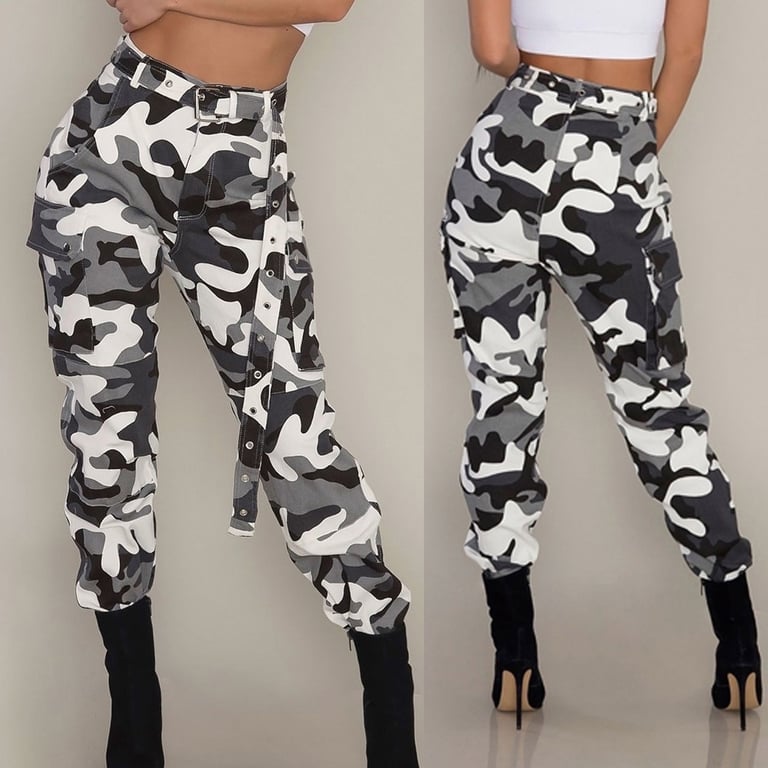• Tags: women's trousers, camo, stylish, simple, pockets, belt, modern, outfit, women, clothing, original, soldier