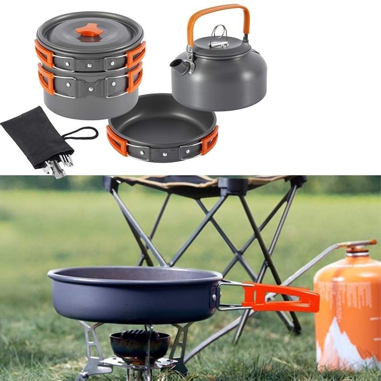 This camping utensil set is perfect for anyone who loves spending time in nature! It includes a camping kettle, frying pan, pot, and serving accessories. Made from aluminium, it is sturdy and easy to store and carry. With this camping set, you will have everything you need to prepare delicious meals under the stars.