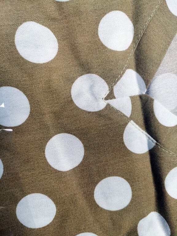 • The dress features lovely polka dots.