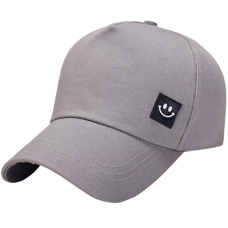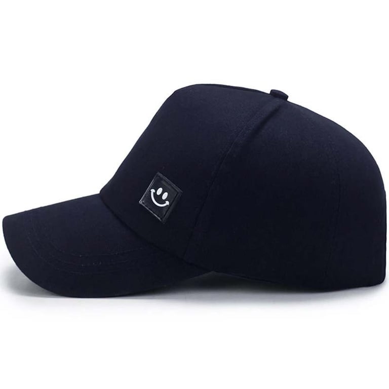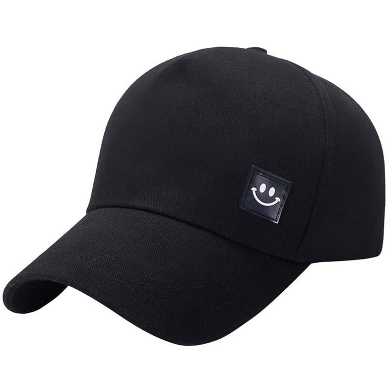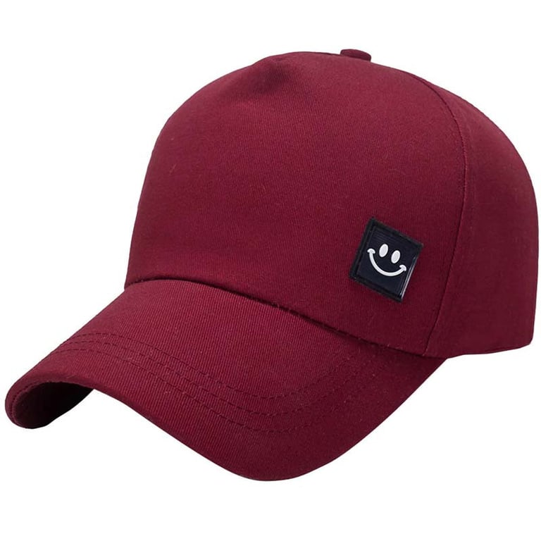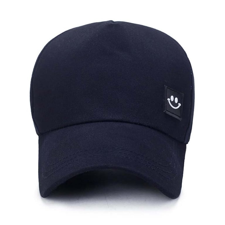 Solid colour cap with a smiley face.