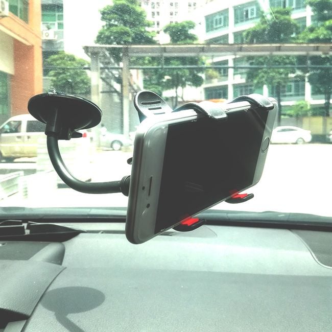 The holder simply presses against the windscreen and then the phone can be inserted into it.