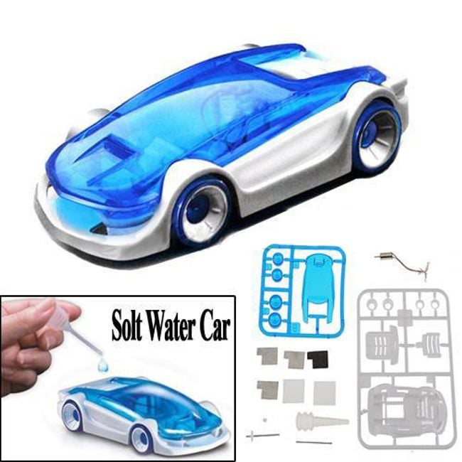 The saltwater-powered car will delight every little boy and his dad. Simply assemble the car and fill it with saltwater. You will need a cup to mix the water with salt, a spoon to stir the solution, a screwdriver, and wire cutters for assembly and use.