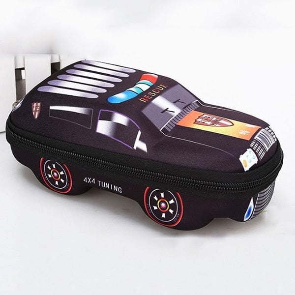School pencil case in the shape of a car.