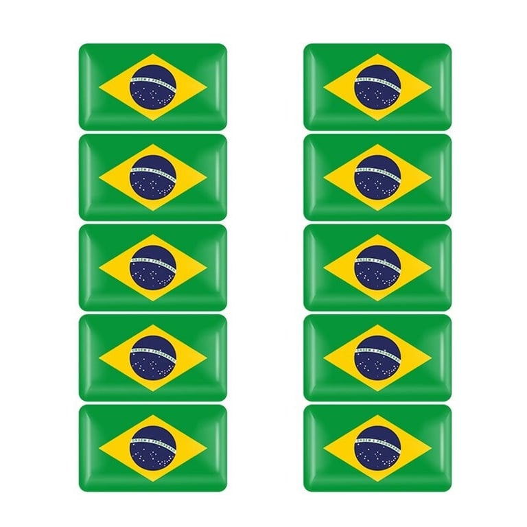 Car sticker with the Brazilian flag. Strong and quick attachment. Dimensions 18 x 11 mm. Sticker in a pack of 10 pcs.