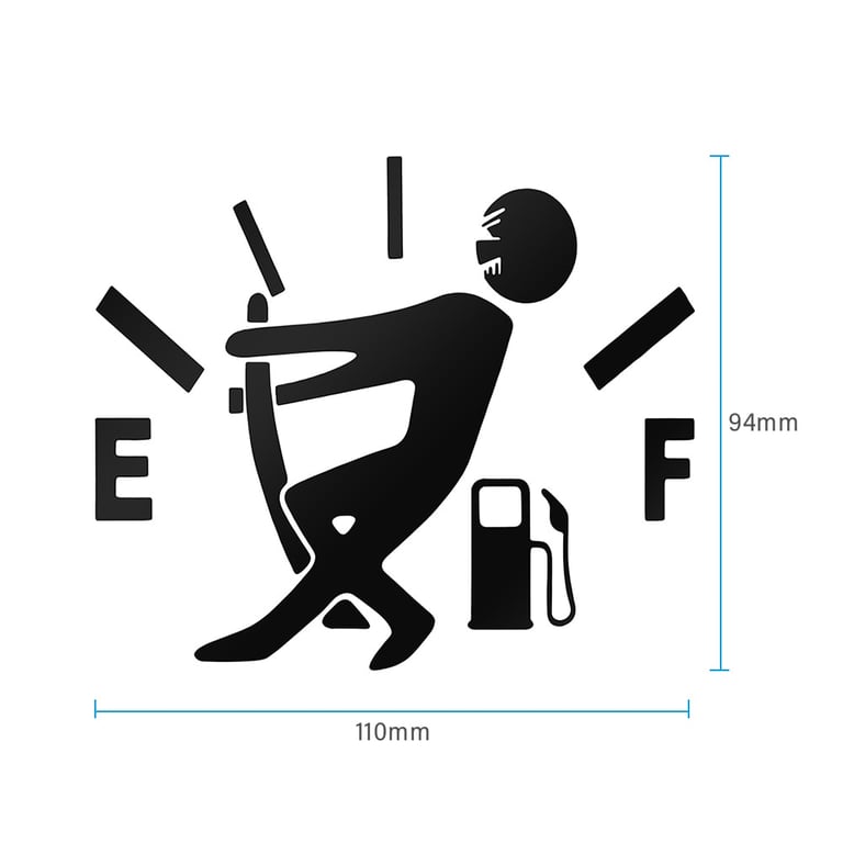 A funny sticker for your car's fuel tank that will make you laugh every time you refuel.