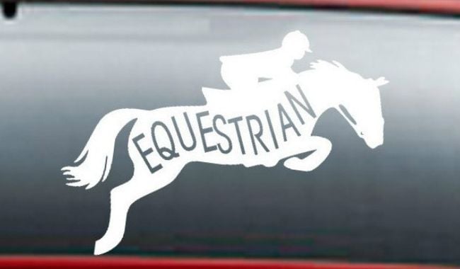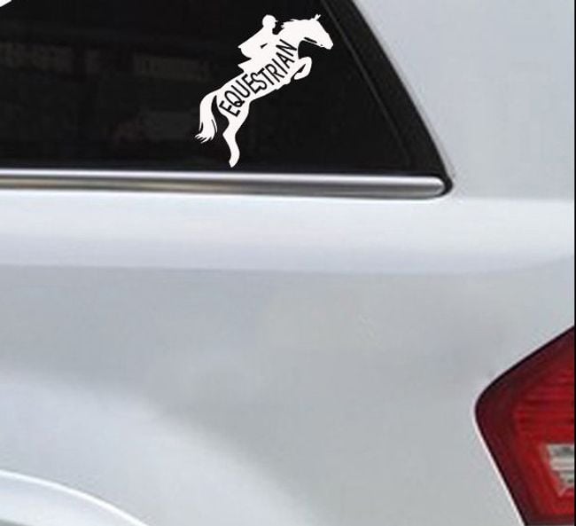 Decorate your car with what you love most! A sticker featuring a horse with a rider over a jump. Applying the sticker is easy, and thanks to the durable material, it withstands both rain and sunshine.