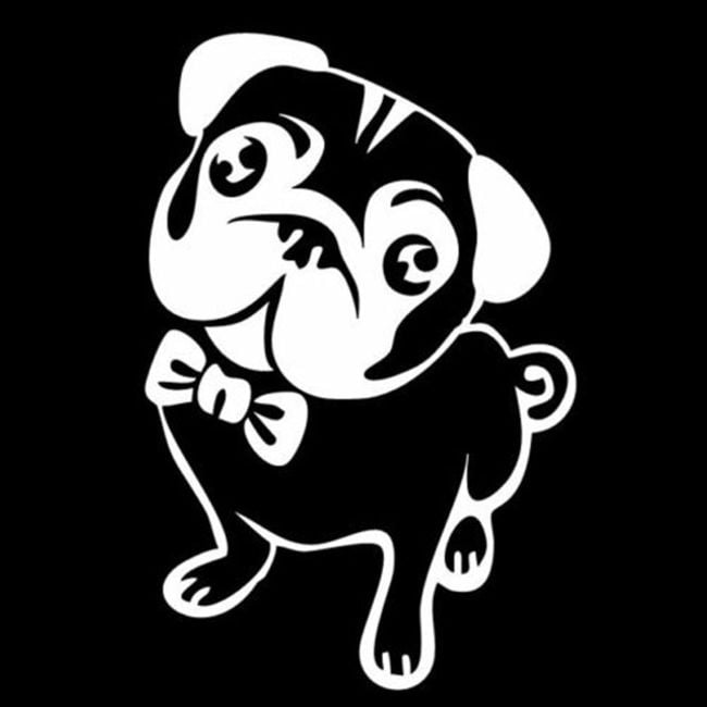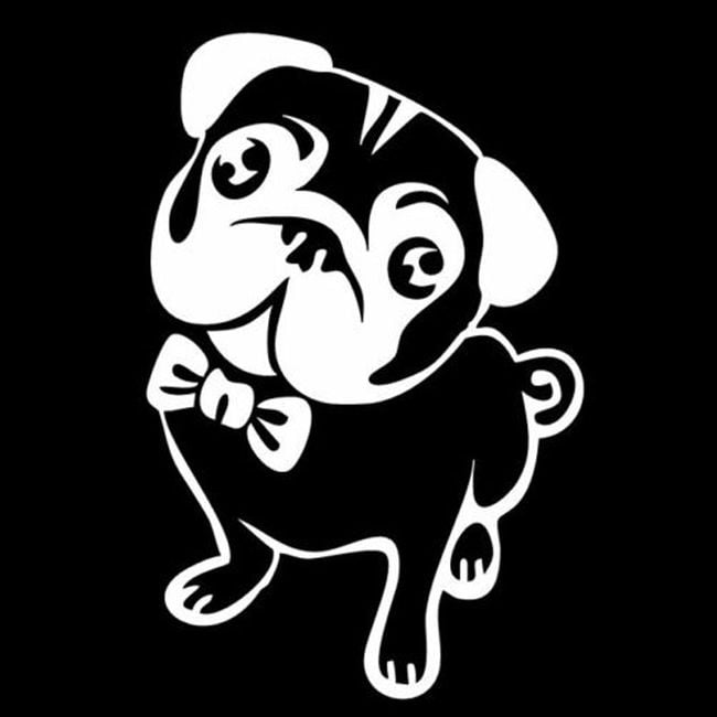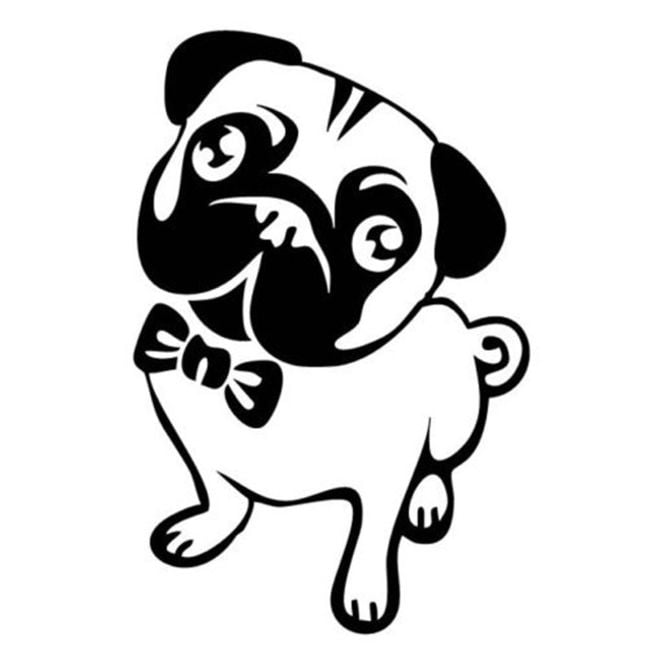 A cute pug with a bow tie around its neck will look great on your four-wheeled darling.